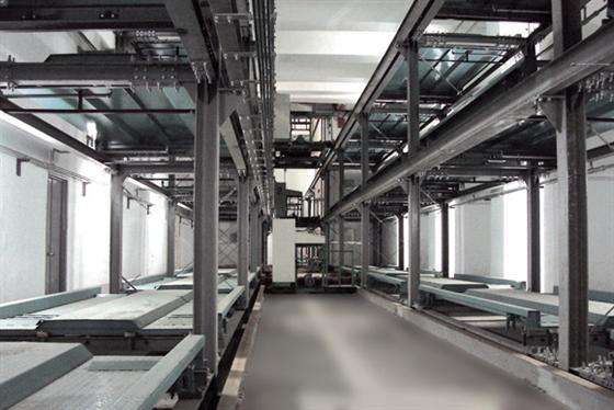 與地下車庫相比可更加有效地保證人身和車輛的安全,人在車庫內(nèi)或車不準(zhǔn)停位置,由電子控制的整個設(shè)備便不會運轉(zhuǎn)。應(yīng)該說,機械車庫從管理上可以做到 徹底的人車分流。在地下車庫中采用機械存車,還可以免除采暖通風(fēng)設(shè)施,因此,運行中的耗電量 比工人管理的地下車庫低得多。機械車庫一般不做成套系統(tǒng),而是以單臺集裝而成。這 樣可以充分發(fā)揮其用地少、可化整為零的優(yōu)勢,在住宅區(qū)的每個組團(tuán)中或每棟樓下都可 以隨機設(shè)立機械停車樓。這對眼下車庫短缺的小區(qū)解決停車難的問題提供了方便條件。